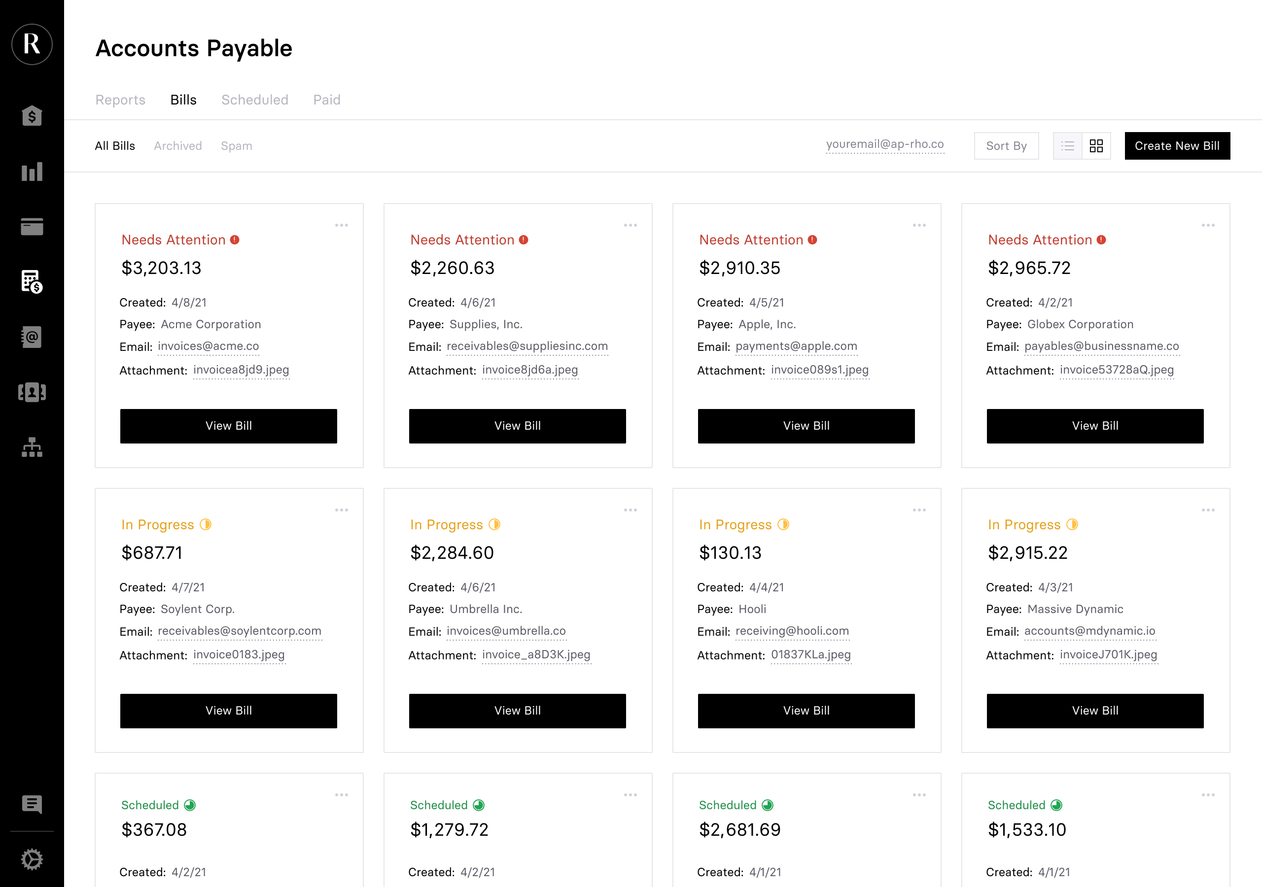 Having all these tools in one place allows you to get a consolidated view across of all your finances - banking, corporate card, accounts payable, and other sources. They help you streamline your accounting processes. And, if you are in need of capital - but don't have what traditional banks require to get what you need - Rho aims to be the financial tool for your business.